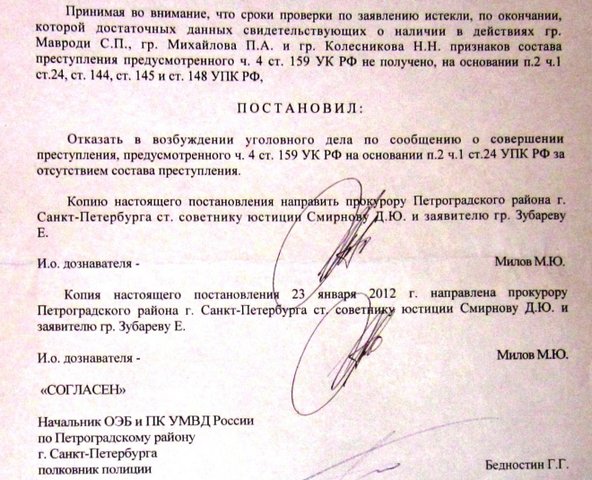 Недавно сделал сюжет. Достаточно банальный - я подал в петербургскую полицию заявление о возбуждении уголовного дела в отношении лиц, организовавших и рекламирующих финансовую пирамиду "МММ-2011". Спустя месяц после моей заявы мне ответили ожидаемым отказом:
