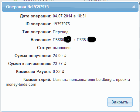 Comment: Выплата пользователю maver1ck с проекта money-birds.com
