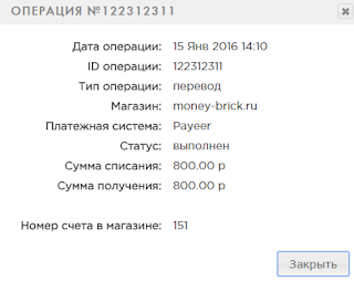 Комментарий: Выплата пользователю Monitorr с проекта money-brick.ru
