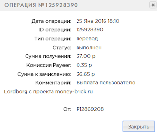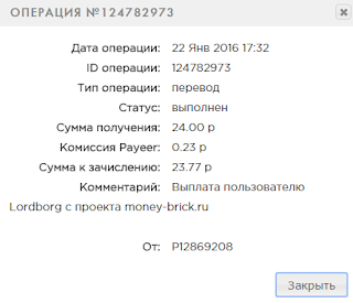 Комментарий: Выплата пользователю jack27 с проекта money-brick.ru