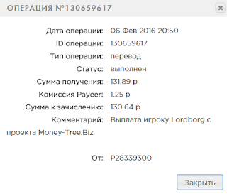 Comment: Выплата игроку borisred с проекта Money-Tree.Biz