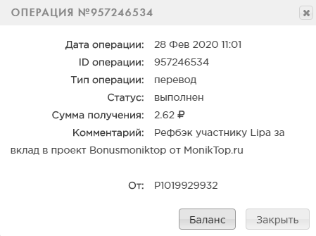 Комментарий: Выплата пользователю Sogo с проекта MonikTop.ru