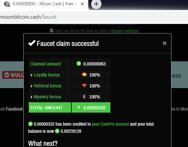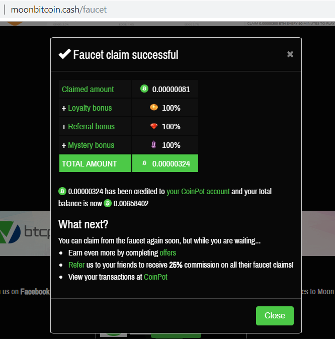 Выплата из крана MoonBitcoinCash на CoinPot: