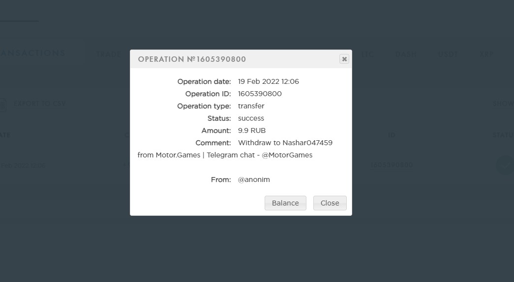 Комментарий: Withdraw to peshexod from Motor.Games | Telegram chat - @MotorGames