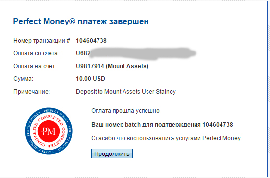 The amount of 25 USD:money: has been withdrawn from your Perfect Money account. Accounts: U:_378:->U9817914. Memo: Shopping Cart Payment. Deposit to Mount Assets User glianzev.. Date: 17:42 06.10.15. Batch: 104465128:thumbsup: