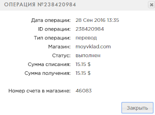 The amount of 5.44 USD has been deposited to your Perfect Money account. Accounts: U12340510->U1006****. Memo: API Payment. Invoice 48510, Serg-dengy.. Date: 19:50 29.09.16. Batch: 148247522.