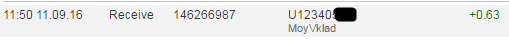 12.09.16 Received Payment 3.96 USD from account U12340510.