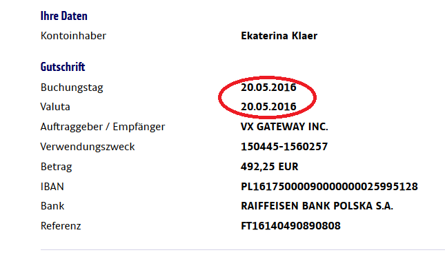 Здравствуйте, у меня сегодня появился процессор VX, и сума к выводу 0,68 евро.