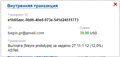 Memo : Выплата [Neyro prototype] за неделю 27.11-1.12 (12,0%) ASTek