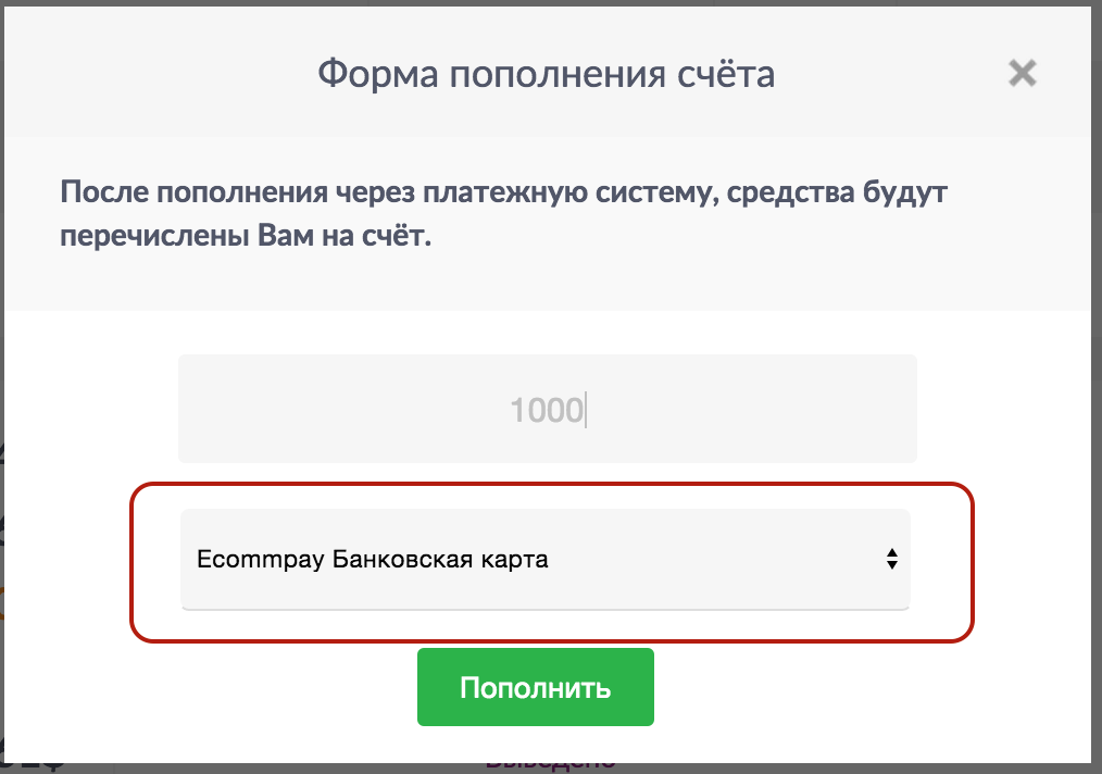 Выбирайте как способ пополнения Ecommpay Банковская карта