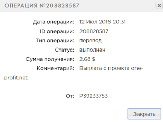 Memo: API Payment. Выплата с проекта one-profit.net.. Date: 06:13 12.07.16.