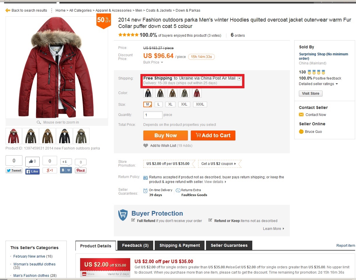 Простому китайцу отправка такой куртки может вполне выйти долларов в 50$.