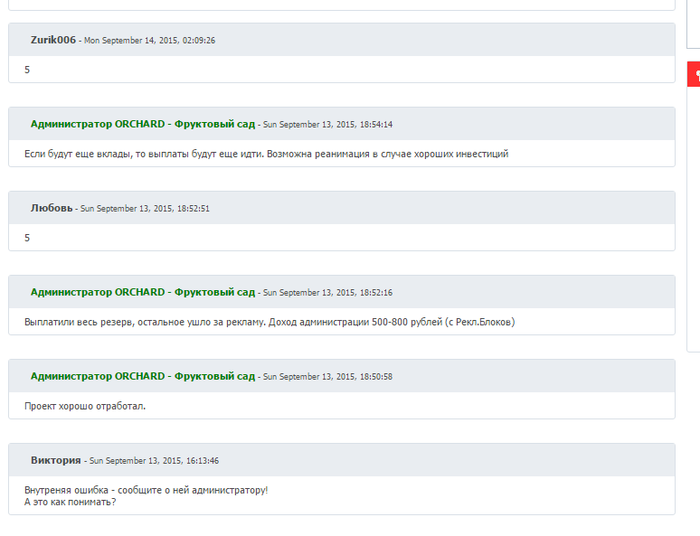 Comment: Выплата пользователю WEBmonitor с проекта Orchard.tk
