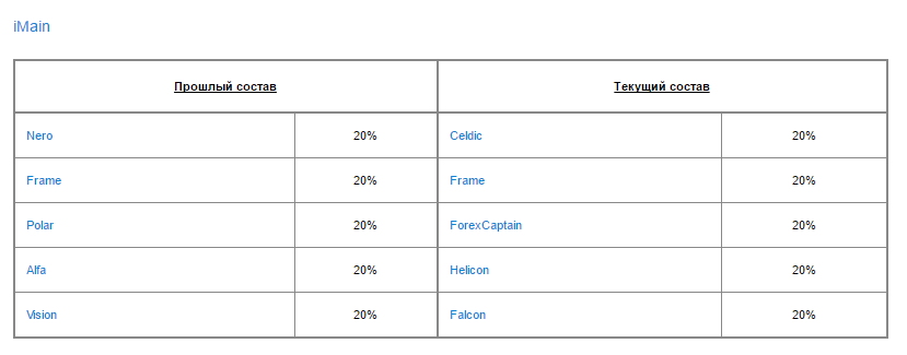 iMain*2 Недельный результат: : 0,00% Инвестор: 0,00%