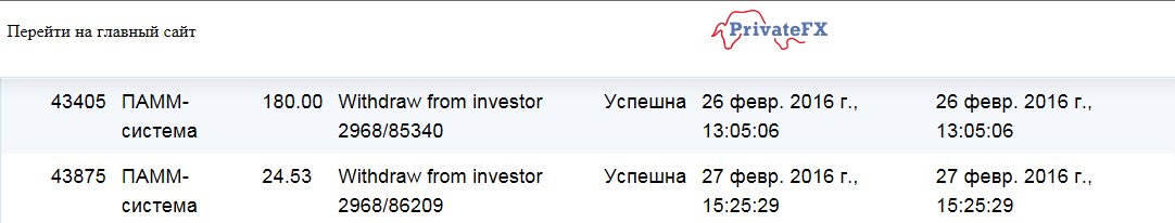 Спасибо, нашел по ссылке https://my.privatefx.com/accounts/transactions/номер счета.