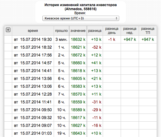 Вот именно. У меня было 100 $ каких-то бонусных. Так я, чтобы не заморачиваться с перебросом в другой кабинет, кинул их на Ахмеда. Было это 16 мая. Так вот, на сегодняший день доходность по счету 15.6%, т.е. 7.8% в месяц. Это всего лишь за 2 месяца торговли. Отсюда я делаю вывод: если вложить первоначально определенную сумму и не заниматься всякими доливами-переливами, то получается вполне прибыльный счет, даже учитывя такие просадки.