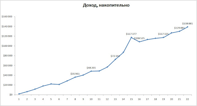Все хорошо если бы не одно НО - все убыточные сделки пересиживаются и применяется тактика усреднения. Показательны были последние 2 недели. Хороший доход 4,5% и 7,25% заработан с довольно существенными просадками в течение недели. Официальная статистика просадки в 3,66% не соответствует действительности. На прошлой неделе просадка достигала 15%, на этой неделе управляющему пришлось усредняться 3-мя сделками, что уже существенно с точки зрения рисков. Сделки были открыты EURUSD sell, 100, 50 и 50 лот, по ценам 1,1350, 1,1375 и 1,1405. Просадка была по первым 2-м сделкам. 1-я сделка 100 лот *65 пунктов = -$65000, 2-я сделка 50 лот * 40 пунктов = -$20 000. При капитале памма $400 тыс. просадка составила примерно 85/400 = 21%. Напомню что доход за неделю составил $30 306, что в 3 раза меньше просадки, и к тому же цена евро на сейчас составляет 1,1295. То есть потенциально можно было заработать 100*50 пунктов +50*110 пунктов + 50*80 пунктов = $50 +$55 +$40 = +$145 тыс. (или +35%) Вот такая прибыль означала бы соотношение прибыль/убыток почти 2/1, а не 1/3 и оправдывала бы риски в 20%