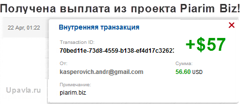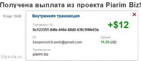 Выплату 11,14$ в проекте Piarim.biz получил!
