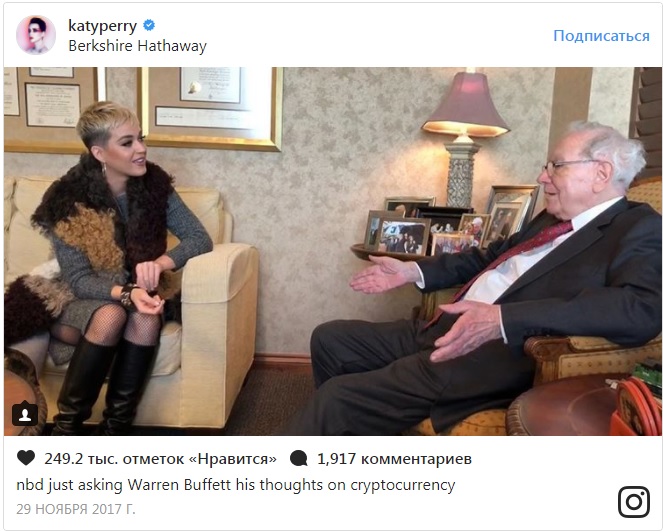 А в ноябре прошлого года Кэти выложила снимок на которой она беседует с известным инвестором Уорреном Баффеттом.