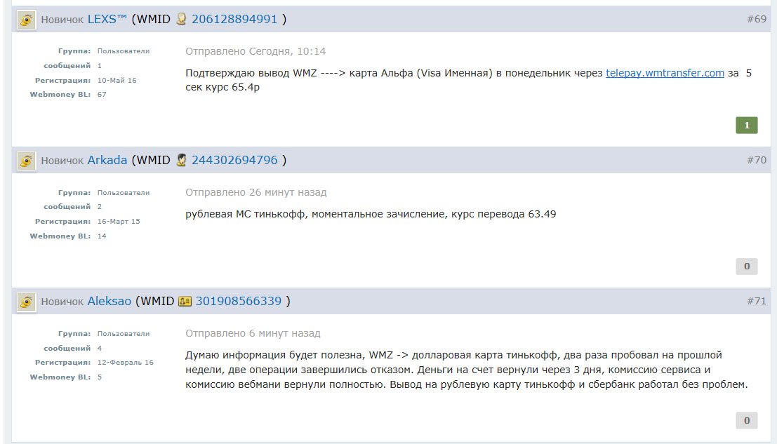 Свежий опыт вывода WMZ через Telepay на карту Альфа-Банк, взято с форума WebMoney