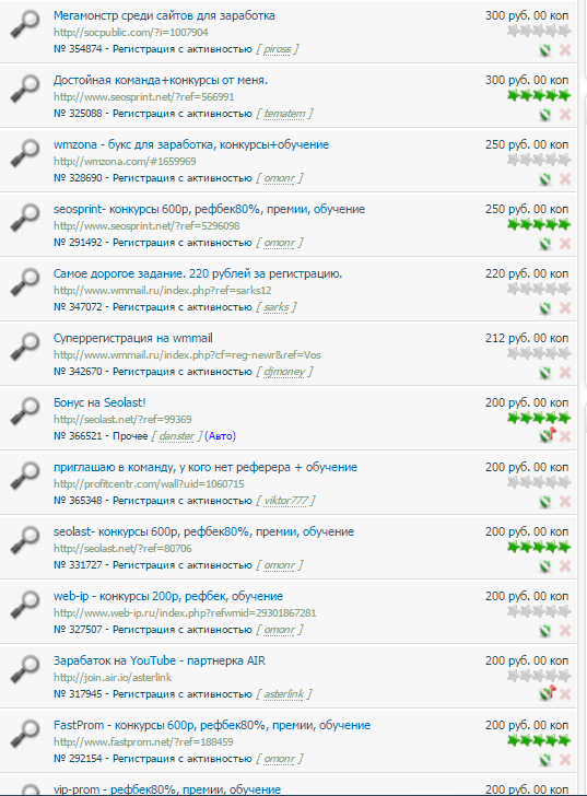 а что разве только по регистрации на других подобных проектах должны быть задания?