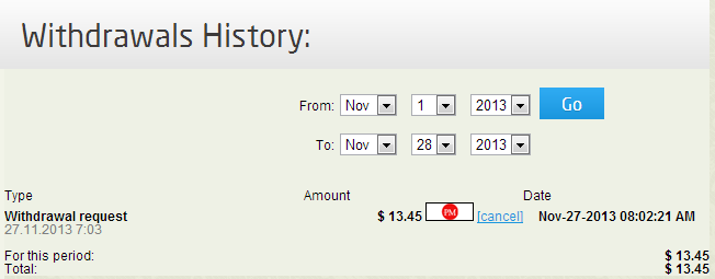 23.11.13 08:16 Received Payment 1.6 USD from account U3025551. Batch: 41763183. Memo: Shopping Cart Payment. Withdraw from profitwonder.com.