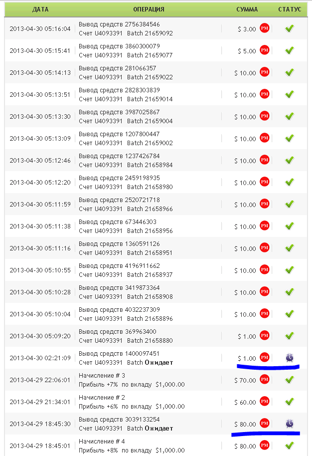 Не правда, не вводите людей в заблуждение. На балансе у меня была сумма и после первого пендинга я уже по баксу тестовом щупал наличие свободных денег на счету проекта. Как только прошла выплата - вот так дальше маленькими и вывел. Если у кого-то ума не хватило для таких действий, так не надо обвинять кого-то в чужих грехах. Учиться и ещё раз учиться.