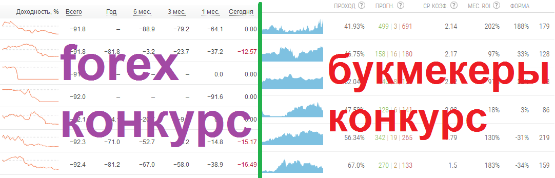сопоставление конкурсов: форекс = букмекеры = лотереи