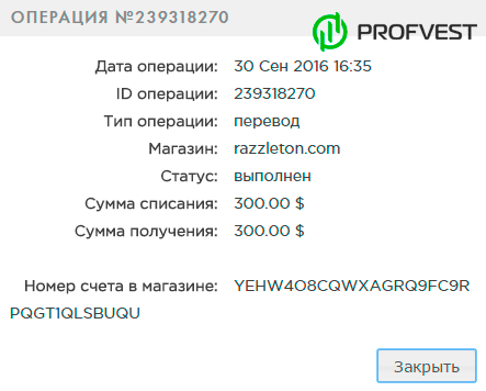 Депозит RAZZLETON :