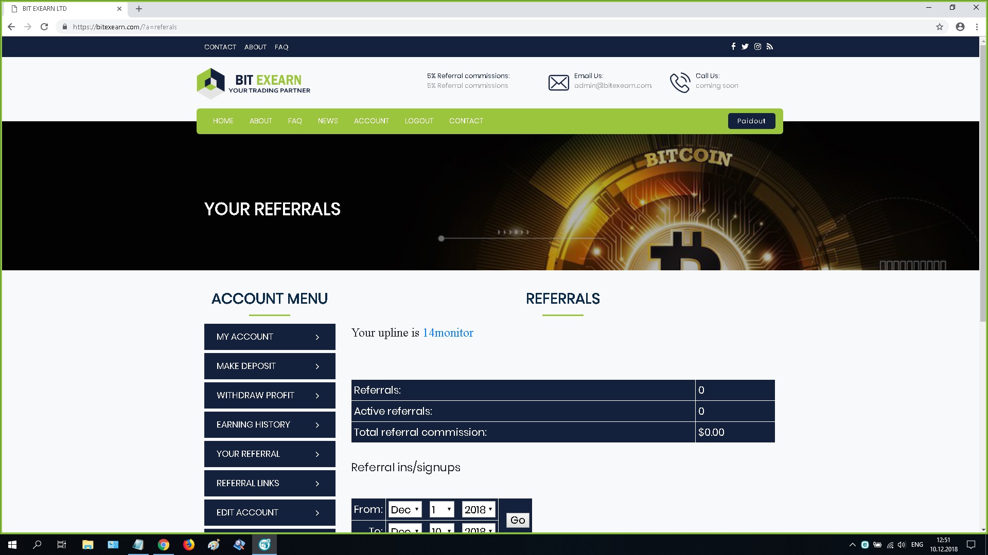 10 декабря я сделал депозит 50 долларов в почасовик bitexearn.com.