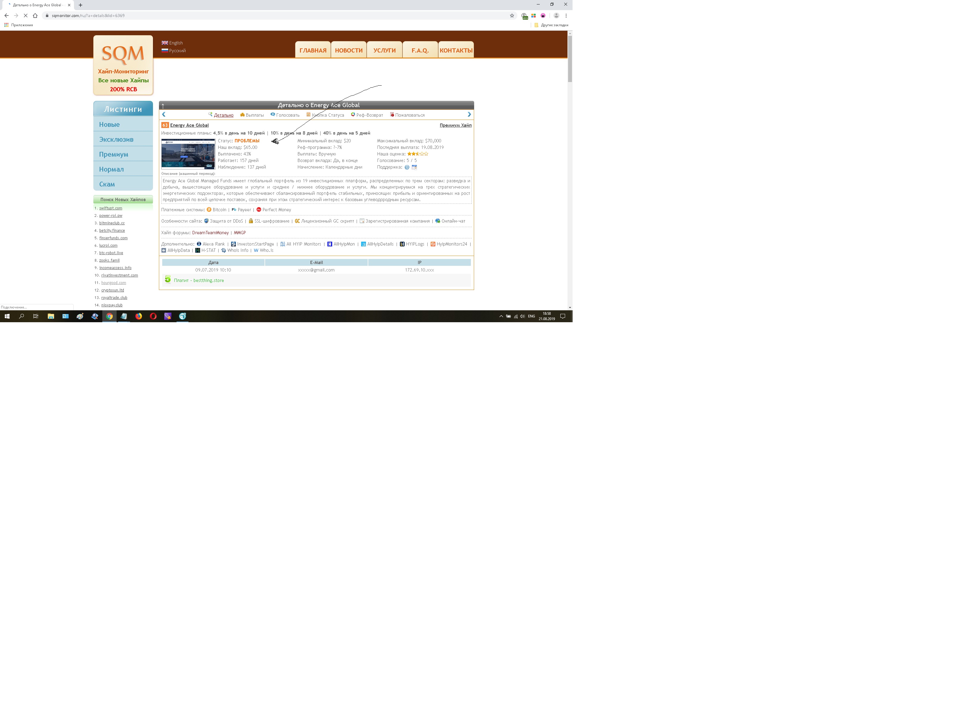Уже пару месяцев прошло как админ мою 20ку отжал, отреагировал только Monhyip - выставил скам, остальные мониторинги (list4hyip, hyipregular, sqmonitor), сколько не писал, им пофигу вообще.