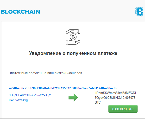 Платеж был получен на ваш биткоин-кошелек.