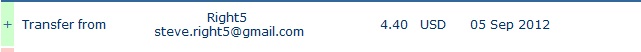 The amount of 3.4 USD has been deposited to your Perfect Money account. Memo: API Payment.. Date: 16:49 05.09.12. Batch: 11319105.