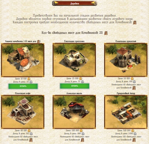 Общая идея игры состоит в постепенном развитии Ваших Деревень, Городов, Столиц.