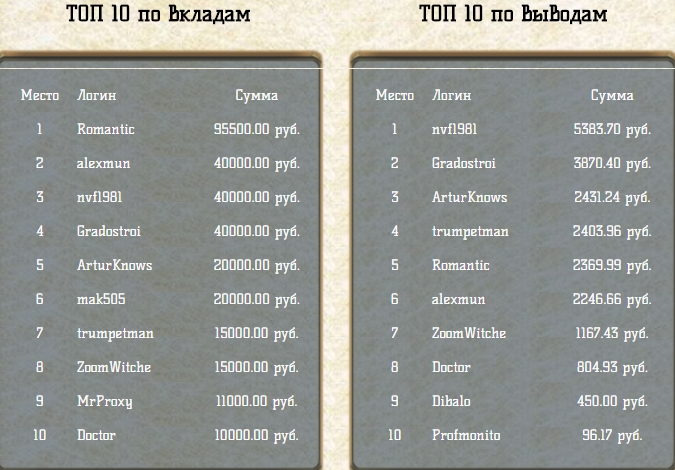 Курс ввода/вывода: 1 руб = 1000 дублонов.