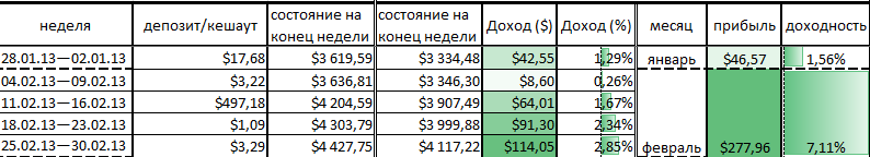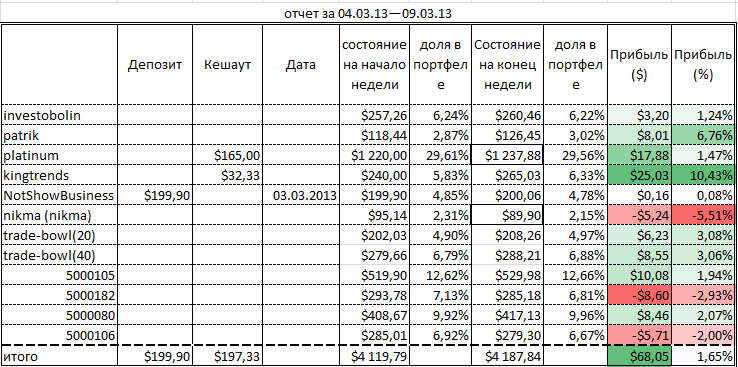 Третья неделя подряд омрачена крупной просадкой одного из счетов. На этот раз отличился Патрик, съевший большую часть прибыли. При этом половина счетов не торговала