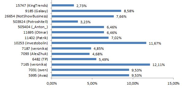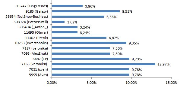 7. ПАММ счет 7165 (veronika) ------------- 80$ - 6,80%