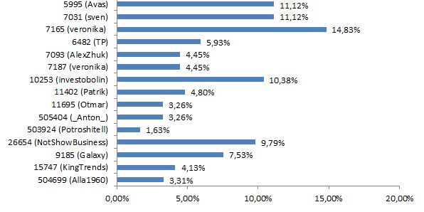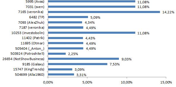 1. ПАММ счет 10253 (investobolin) ------- 217,16$ - 18,46%