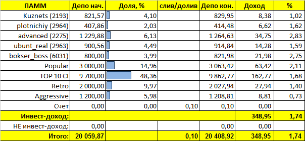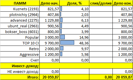 Компания представила новые индексы и приходится переформатировать портфель. Скажу сразу, что состав опять меня не устраивает. Опять нужно городить огород. Но в этом и состоит работа инвестора, суметь не смотря ни на что заработать прибыль. Немного пожанглировав индексами прихожу к вот такому портфелю. Убунт получил повышенную долю из-за того, что в субботу у него не проходил ролловер. Остальные все более менее в норме. На свой риск беру индекс агрессив. Отмар конечно страшный управ, но попробую немного поэкспериментировать, заодно и хозяин вошел, а то его совсем лишили присутствия в индексах.