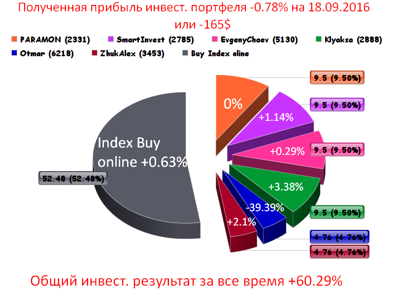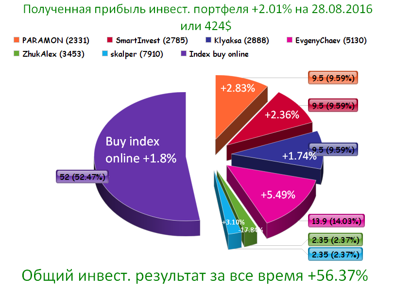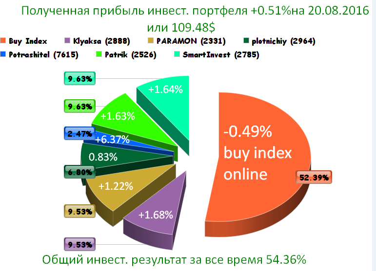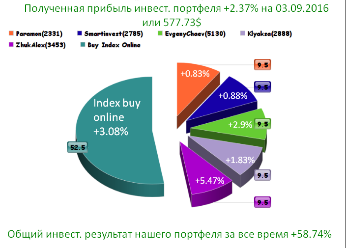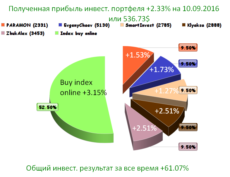 Полученная прибыль инвест. портфеля +2.33% на 10.09.2016 или 536.73$