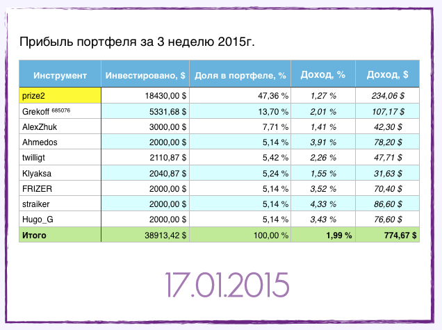 Неделя обещала быть сверх-доходной, но кузнец подвел. Итого имеем 1,99%.