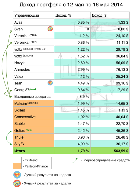 Доходность моего ПАММ-портфеля за 2014г., средняя неделя 1,31%