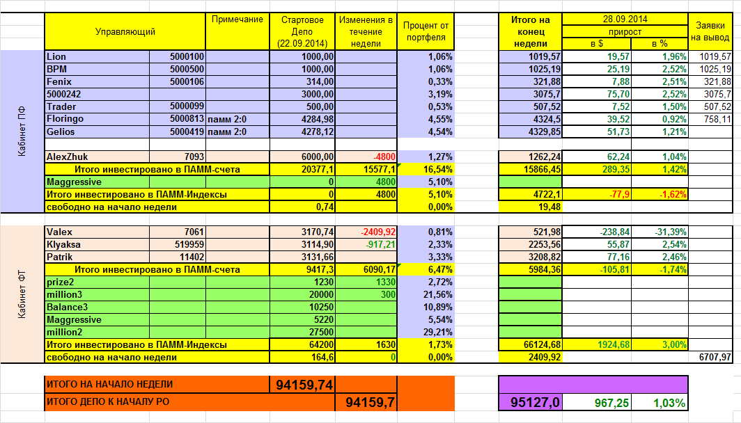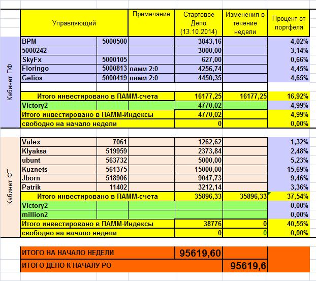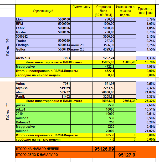 Как видно, неделя завершилась в весьма приемлемом минусе, учитывая кол-во просевших управляющих, да и глубину просадок некоторых из них