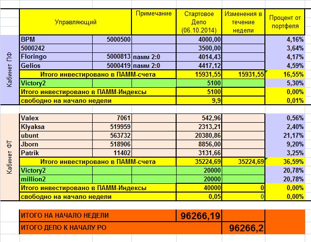06.10.2014 - 12.10.2014: -646,59$/-0,67% от портфеля !