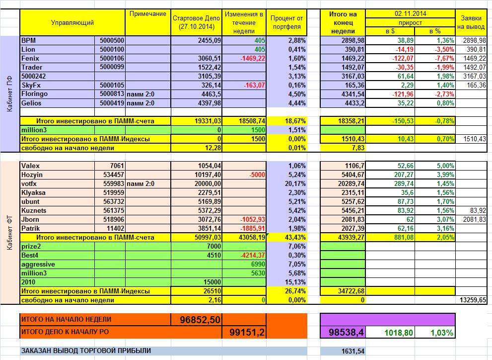 27.10.2014 - 02.11.2014: +1018,8$/+1,03% от портфеля !