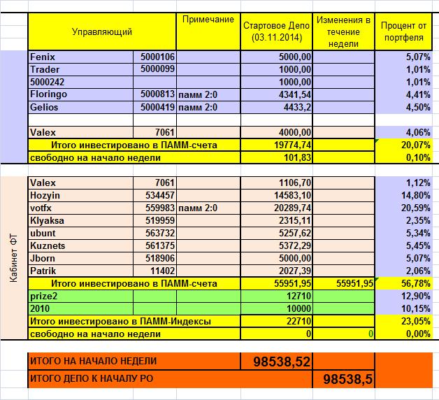 03.11.2014 - 09.11.2014: +1837,38$/+1,86% от портфеля !