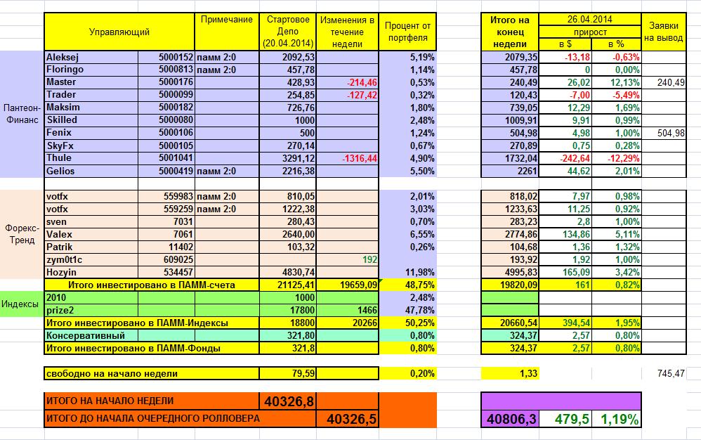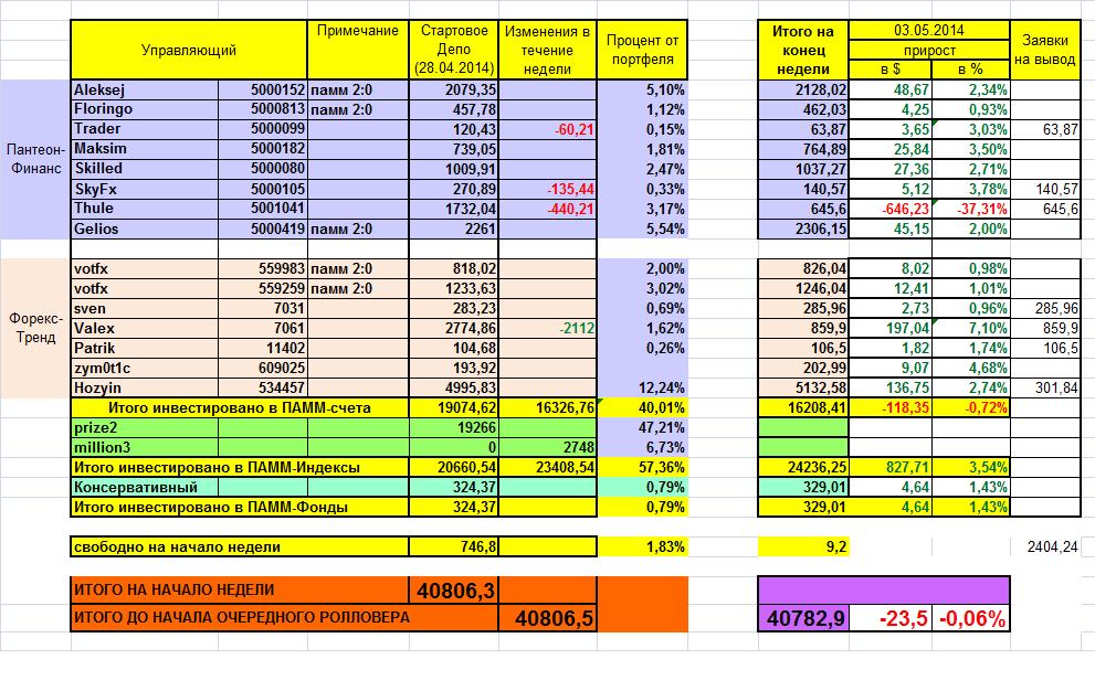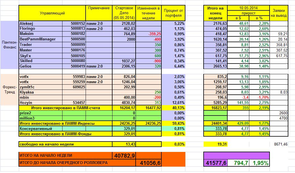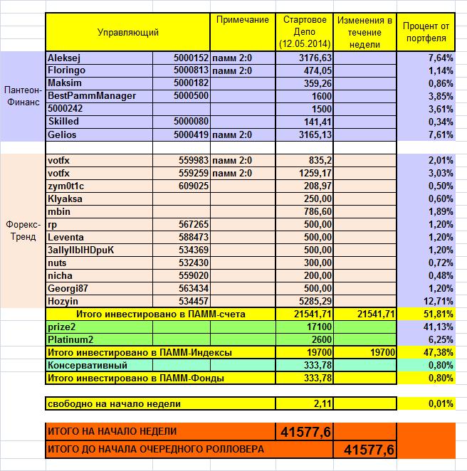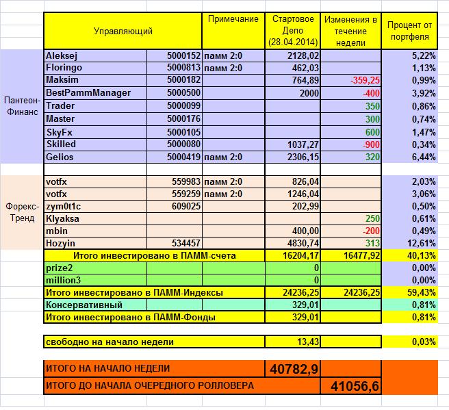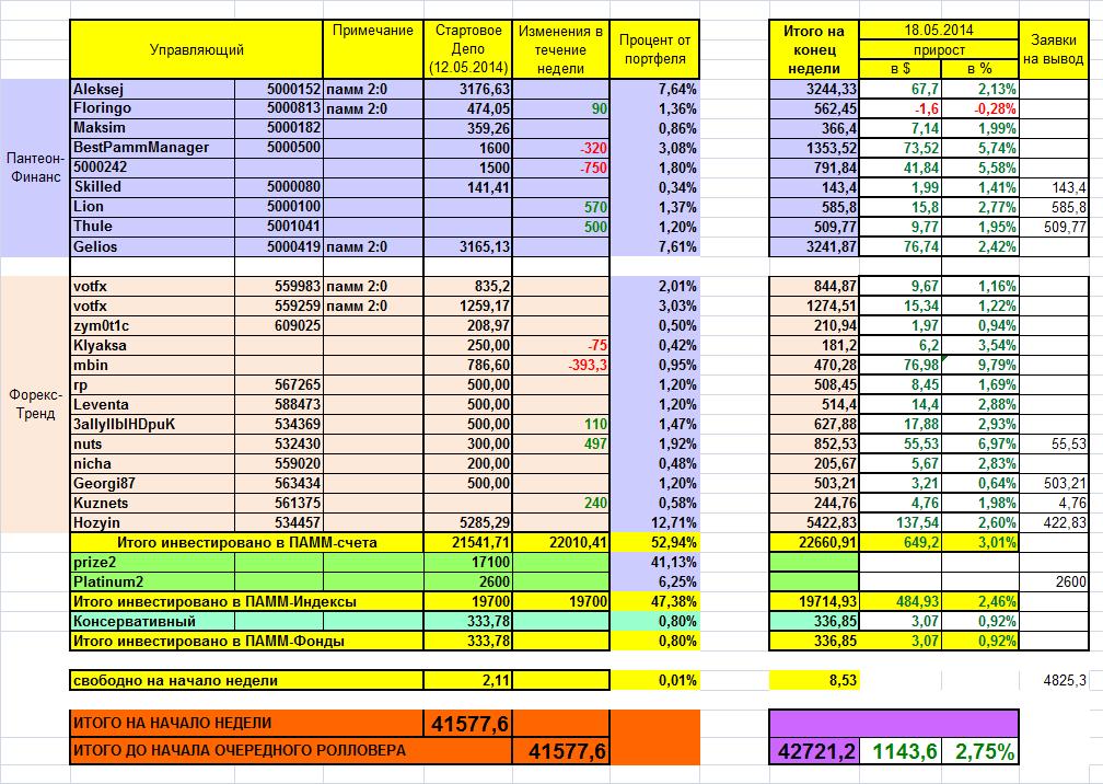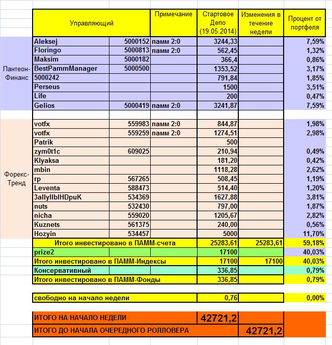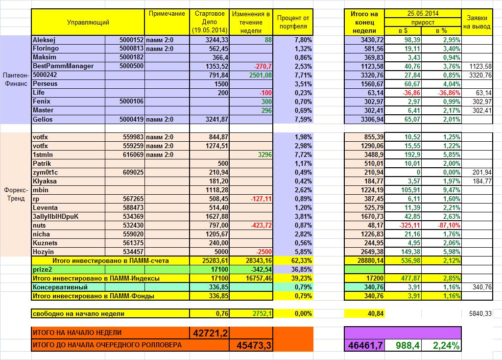 19.05.2014 - 25.05.2014: +988,4$/+2,24% от портфеля !