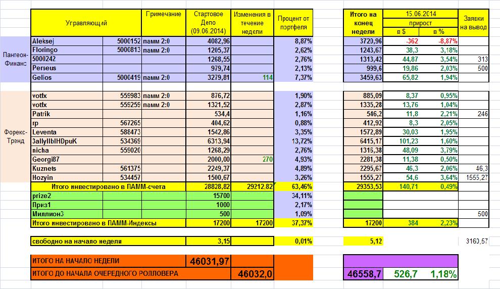 09.06.2014 - 15.06.2014: +526,7$/+1,18% от портфеля !