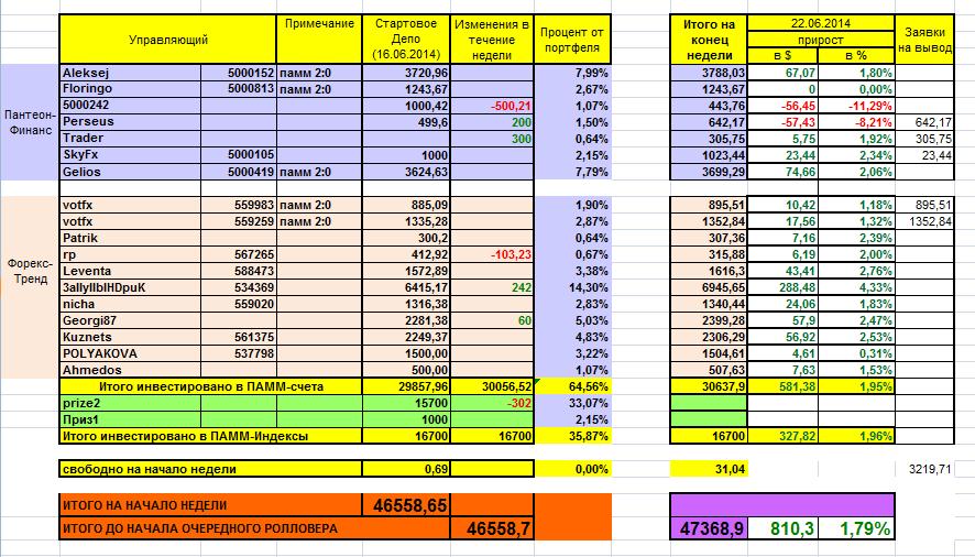 16.06.2014 - 22.06.2014: +810,3$/+1,79% от портфеля