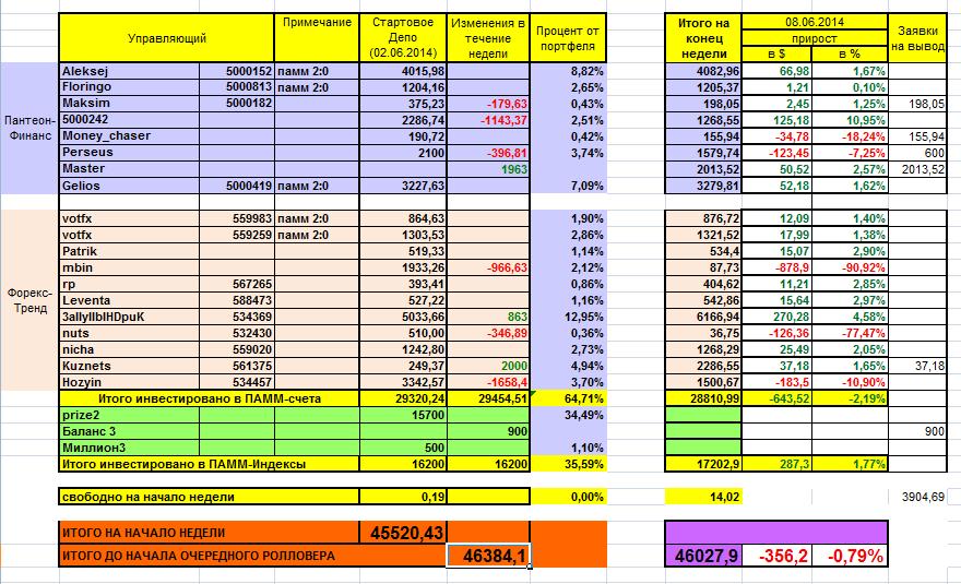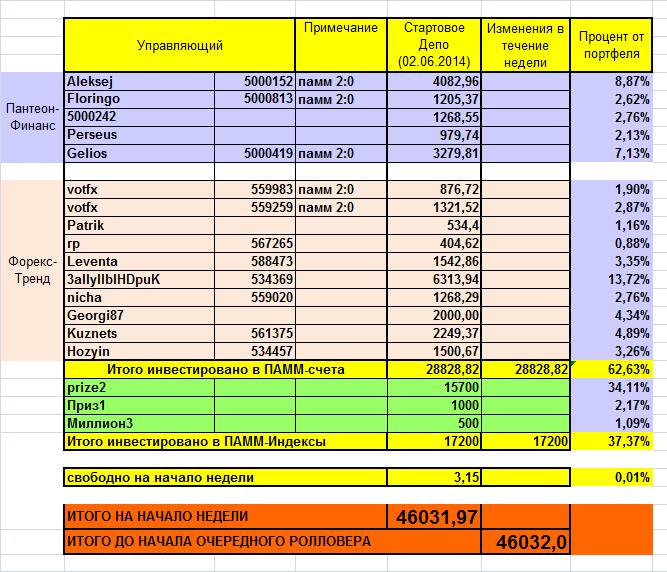 02.06.2014 - 08.06.2014: -356,2$/-0,79% от портфеля